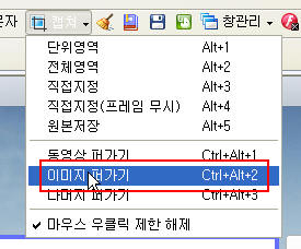 먼저 알툴바의 메뉴 중 [캡쳐]를 클릭하여 ‘이미지 퍼가기’를 클릭합니다.
