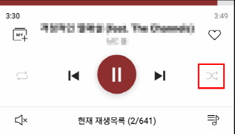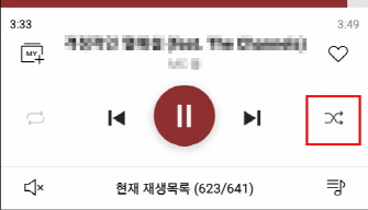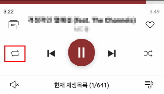 가사/앨범아트 화면 하단의 재생컨트롤 바의 왼편에서 지정할 수 있습니다.