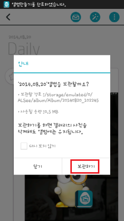 앨범 생성 후 뜨는 안내 창에서 '보관하기'기능을 이용해주시기 바랍니다.