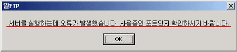ㅁ."포트번호" 21번이 기본입니다. 만약 포트가 중복되었다는 메세지가 나타나면(▼)