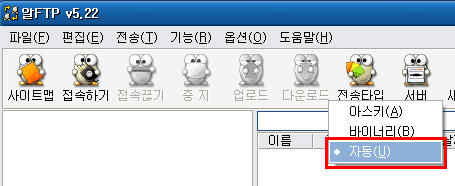 일반적으로 타입을 변경하면 파일의 모든 정보가 바뀌게 됩니다. 이렇게 전송타입을 잘못 지정해서 손상된 파일을 복구할 방법은 없습니다. 전송하실 때 전송타입을 "자동"으로 설정해서 이런 파일 손상을 방지하시기 바랍니다.