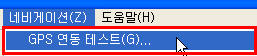 2. 알맵공개용의 메뉴에서 [네비게이션]-[GPS연동테스트]를 선택합니다.