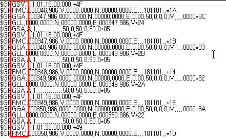 5. 정상적으로 연동된다면 GPS수신값인 NMEA 코드가 계속해서 출력됩니다. 표시되는 NMEA값은 GGA, GLL, RMC, VTG, GSA, GSV 등입니다. 이 때 현위치를 지도상에 표시해주지는 않습니다.