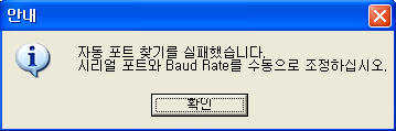 [자동 포트 검색 실패 메세지]